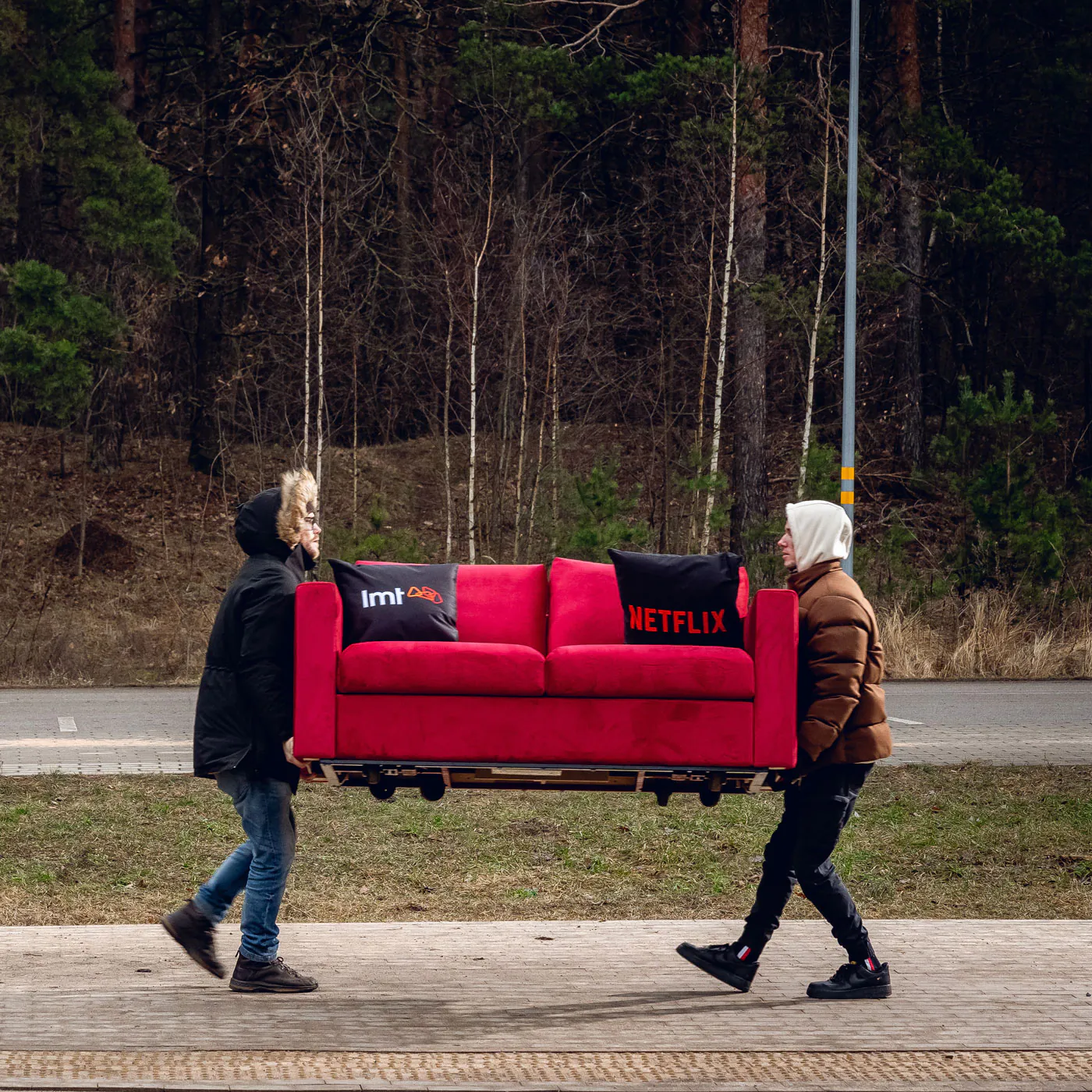 Lai lielās ziņas palaistu ar vērienu, radījām kaut ko negaidītu—spilgti sarkanu, pašbraucošu dīvānu, kas traucas cauri Latvijai kā aina no tava iecienītākā seriāla.